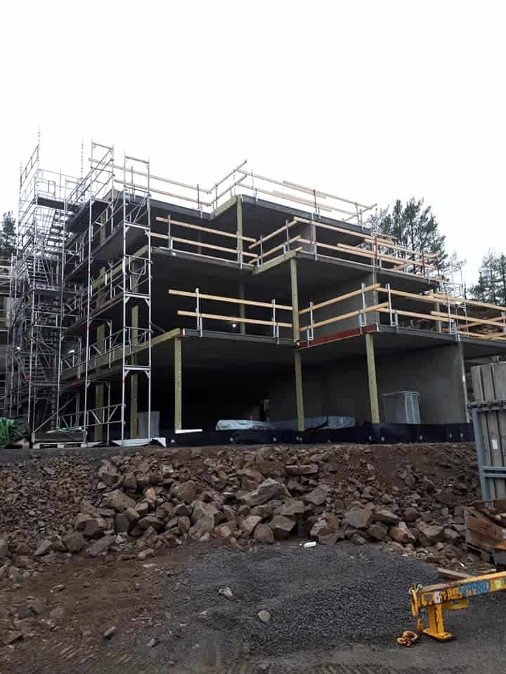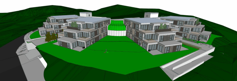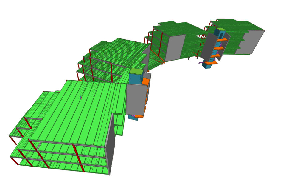 Prosjektet omfatter et leilighetskompleks med fire bygninger i stålkonstruksjon og hulldekker, plassert over en underjordisk garasje i armert betong.