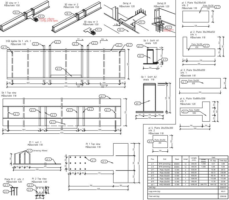 Beregninger og tegninger av HSQ-sveiset stålbjelke