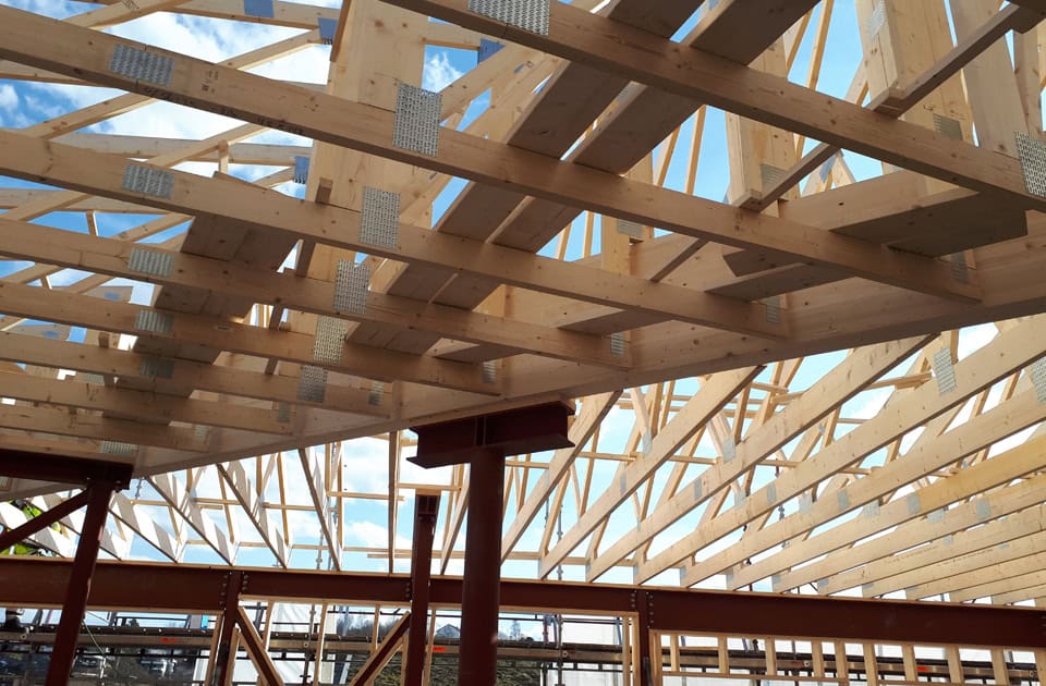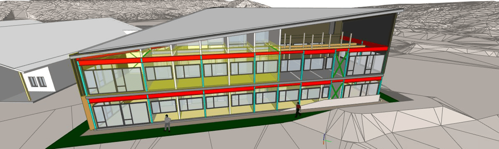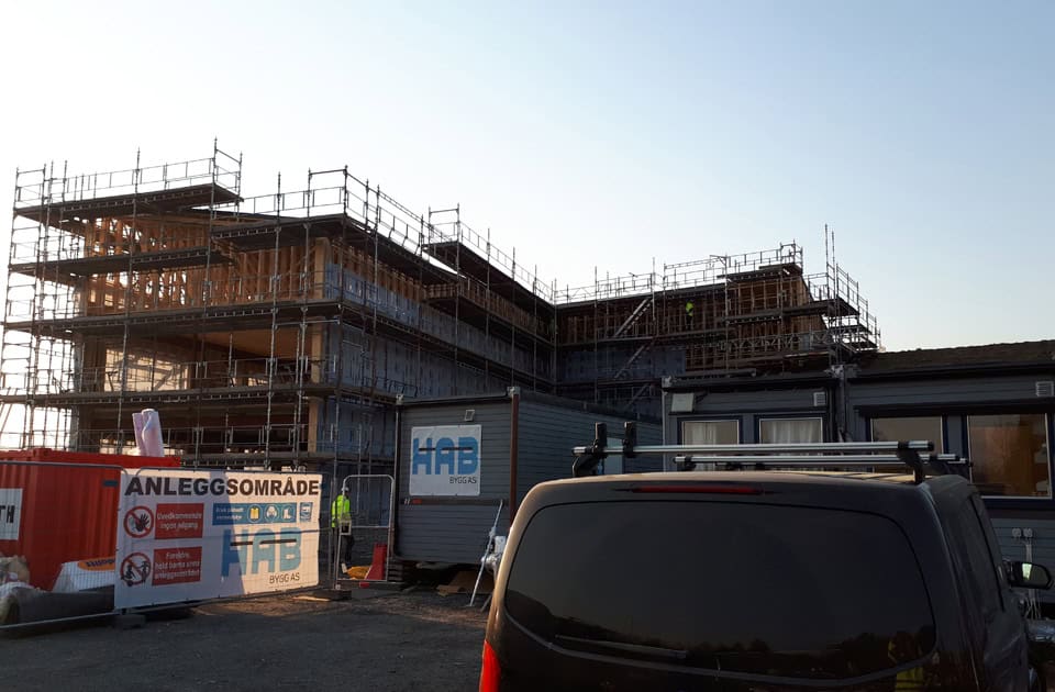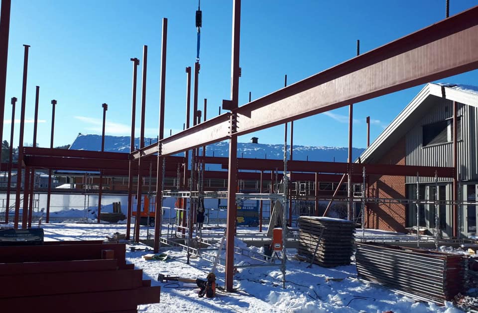 Prosjektet omfatter utvidelse av et 2-etasjes kontorbygg med stålkonstruksjon, hulldekker og et tak av takstoler.
